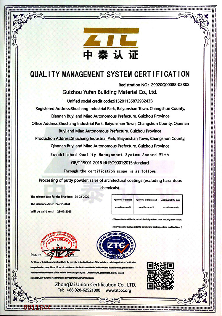 质量管理体系认证证书